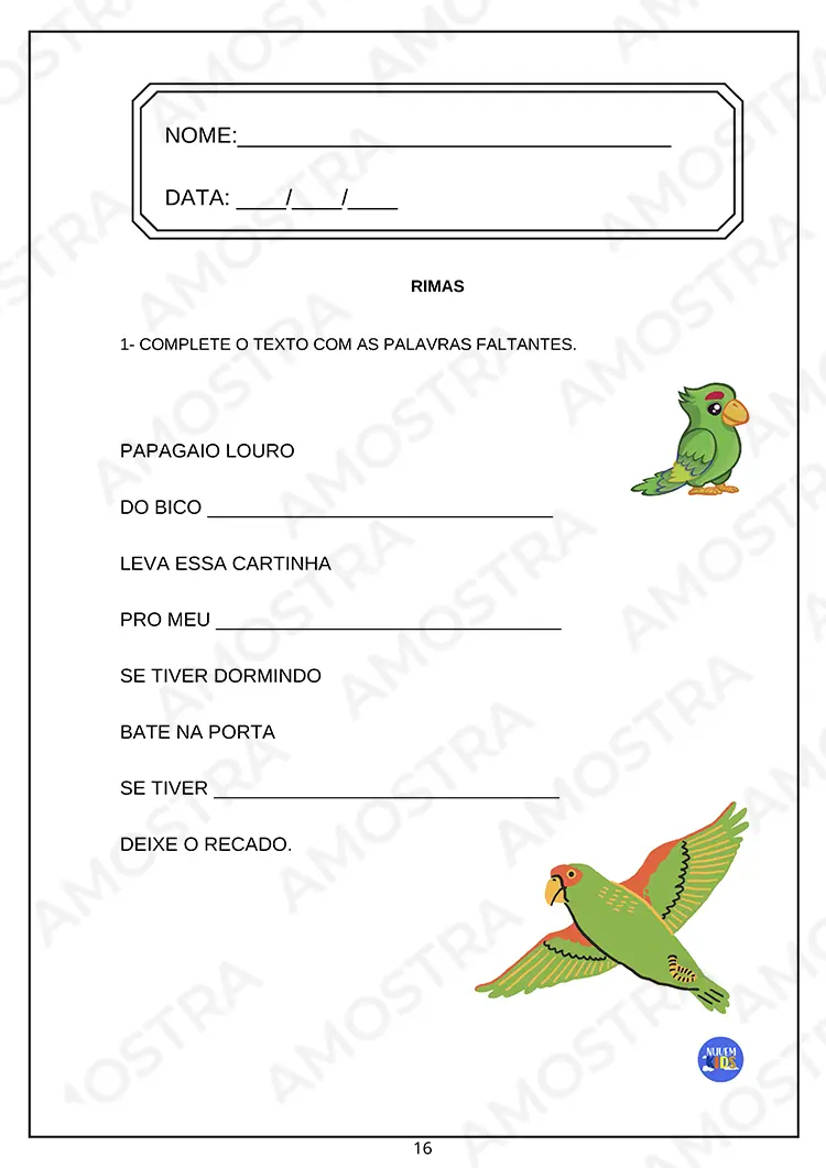 Algumas de nossas atividades não contém cabeçalho para melhor uso com seus alunos.