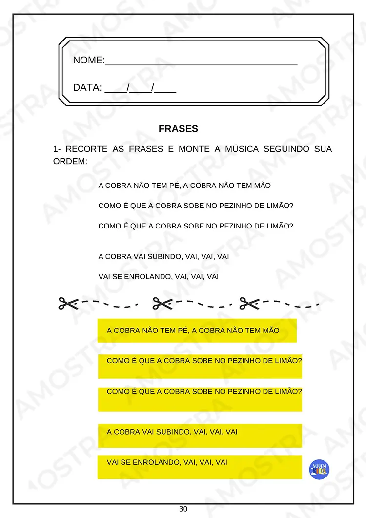Olha só algumas das atividades criadas por uma equipe de pedagogos especializados, que você encontrará depois de adquirir: