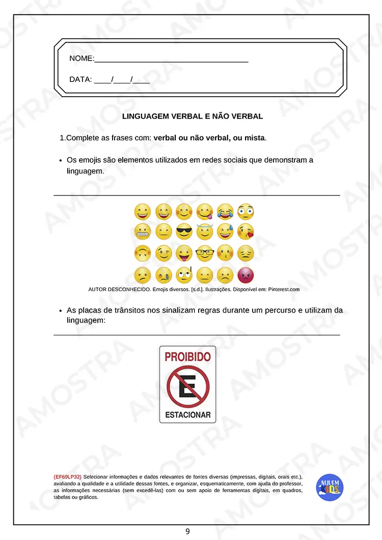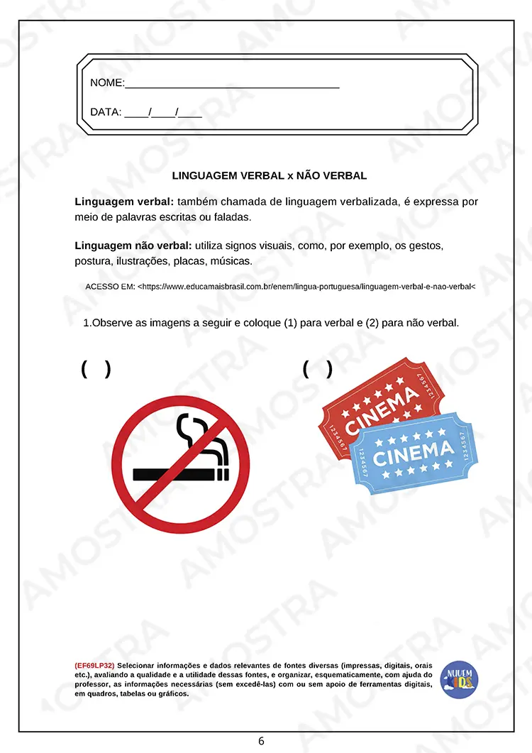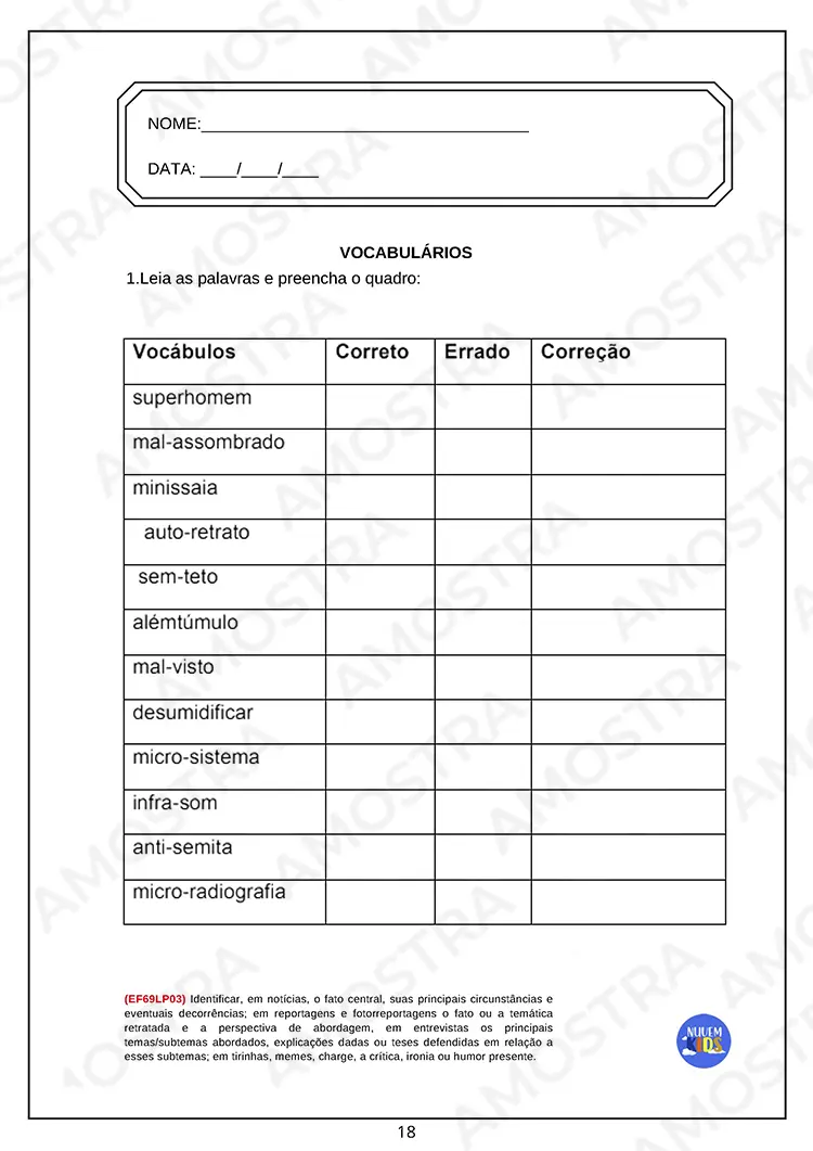Lembrando que no material adquirido não terá essa marca d’água no fundo das atividades 🤗